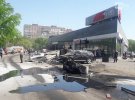 Фура DAF, рухаючись на великій швидкості з верху вулиці Космічної, протаранила 12 автомобілів, знесла білборд і врізалася в супермаркет АТБ. Фура була завантажена великими металевими трубами, повідомляє 056.