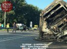 За попередніми даними, водій вантажівки пробив відбійник і виїхав на зустрічну смугу руху. Про це з посиланням на очевидців передають у спільноті "Київ Оперативний".