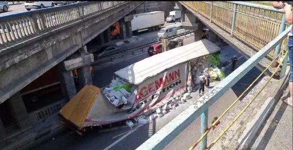 "У напрямку станції метро Святошин від станції Берестейська рух частково відновили двома смугами. Шляхопровід не ушкоджений. Розбирають газоблоки та прибирають ушкоджений вантажний автомобіль", - йдеться в повідомленні.