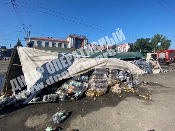У Дніпрі через відмову гальм перекинулася фура з пивом.