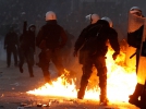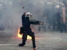 В Афінах, в центрі грецької столиці, горять вже більше 40 будівель магазинів, банків, кафе та інших об'єктів. Вогонь від пожеж освітлює місто, а дим застилає освітлений прожекторами афінський Акрополь.