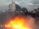 Так, група молодих людей в чорних хустинах на обличчях скоїла напад на поліцейську дільницю в центральному районі Ексархія. Вони кинули у бік будівлі два "коктейлі Молотова", а коли за ними погналися поліцейські, розбіглися по вузьких вуличках.