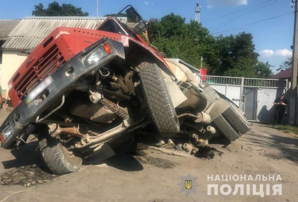 На одній з вулиць Полтави провалився асфальт під колесами вантажівки - міксера-бетоновоза.
