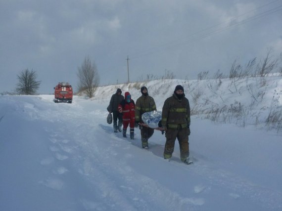 "Рятувальники та медики вирішили йти до хворої жінки пішки - близько 1,5 кілометра засніженою дорогою. Після огляду хворої фельдшер ухвалив рішення госпіталізувати жінку. Надзвичайники тим самим шляхом на медичних ношах несли її до "швидкої", - сказано в повідомленні.