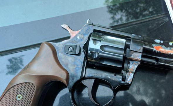 За годину поліцейські побачили схожого чоловіка, який купався у воді. У нього в рюкзаку знайшли пістолет "Флобер".