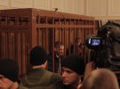 Біля дверей в оточенні відставних прикордонників стоїть мати засудженого.