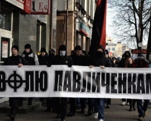 Так вони проводять акцію протесту проти ув'язнення сім'ї Павліченків. Дмитра Павліченка засудили до довічного ув'язнення, а його син Сергій отримав 13 років тюрми за вбивство судді Шевченківського суду Сергія Зубкова.
