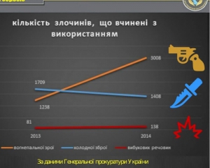 "За світовою статистикою на руках населення перебуває від 13 до 18 одиниць зброї на 100 чоловік. Тобто, кожен шостий житель має "вогнепал". І це без урахування гранат та вибухових речовин. Значний відсоток складає нелегальна зброя, - зазначив Петренко. - В минулому році кількість злочинів в Україні з використанням вогнепальної зброї зросла в 2,5 рази. В столиці тенденція до збільшення такої статистики лишилась незмінною і у 2015-му. Цьогоріч кількість злочинів з "вогнепалом" збільшилось втричі. За вісім місяців по країні (у порівнянні з 2013) – в 4,3 рази. Це говорить про раціоналізацію злочину. Бо ефективність нападу з пістолетом значно вища, ніж з ножем".