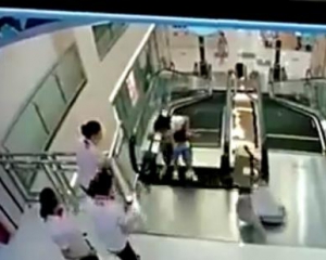 У мережі з'явилося відео, на якому китаянка героїчно врятувала свого сина від несправного ескалатора, перш ніж сталева машина нещадно "проковтнула" жінку.