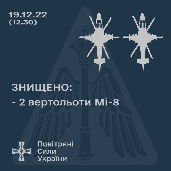 У понеділок, 19 грудня, підрозділи Повітряних сил Збройних сил України збили два російських гелікоптери.
