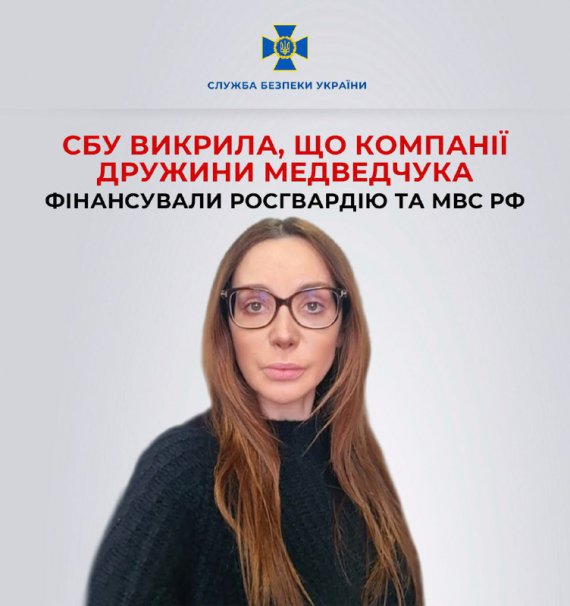 Компанії дружини підозрюваного у державній зраді екснардепа Віктора Медведчука Оксани Марченко переводили мільйонні суми на рахунки Росгвардії та МВС Росії в окупованому Криму.