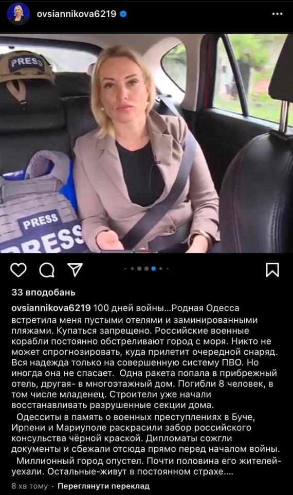 Російська пропагандистка Марина Овсяннікова приїхала в Україну.