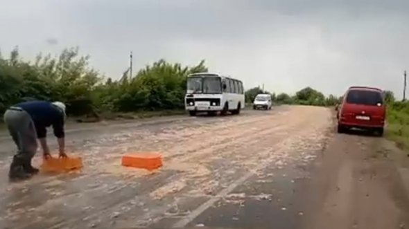 Рух трасою перекрили. Шоколад прибирали протягом кількох годин: одну частину зішкребли за допомогою екскаватора, а іншу частину пожежники змили теплою водою.