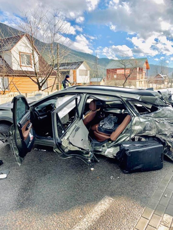 "Водій автомобіля Lexus, рухаючись автодорогою сполученням Мукачево-Львів у напрямку села Микуличин, перетнув суцільну лінію дорожньої розмітки та здійснював поворот ліворуч для заїзду на територію АЗС. А позаду нього в тому ж напрямку рухався водій автомобіля Subaru, який здійснював обгін транспортних засобів. У результаті порушень відбулося зіткнення автомобілів. Під час зіткнення Subaru відкинуло на тротуарну доріжку, де він вчинив наїзд на жінку-пішохода, яка стояла на тротуарі", - сказано в повідомленні.