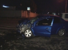 В ДТП потрапили "Шевроле Авео" та маршрутний автобус "Богдан". Після удару "Богдан" вилетів на тротуар та в'їхав у паркан СТО.
