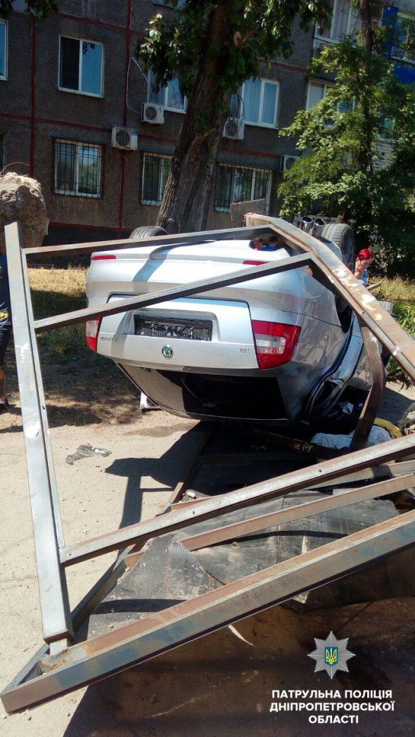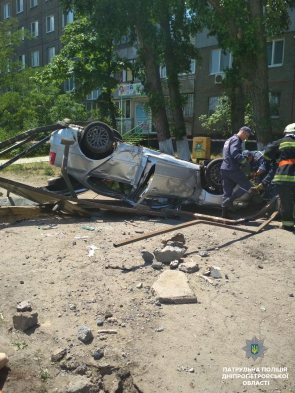 Сила удару була такою, що автомобіль зніс зупинку разом із асфальтом. Машина перекинулася на дах. Жителі довколишніх будинків розповідають, що удар був схожий на вибух.