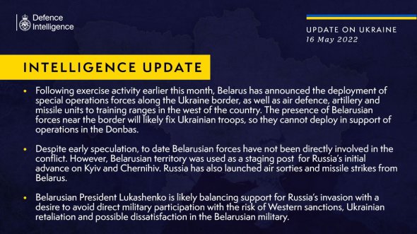 Проте білоруська територія використовувалася як плацдарм для початкового наступу Росії на Київ і Чернігів. Росія також здійснила повітряні вильоти та ракетні удари з Білорусі.