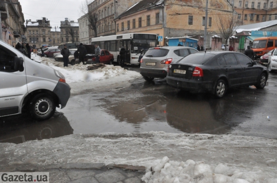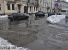 "Зранку не могла сісти на маршрутку на проспекті Червоної Калини. Коли під'їхала, мало того, що облила грязюкою усіх тих, що стояли в черзі, то ще добиратися до дверей потрібно було через глибокі калюжі. Сніг, який двірники накидали обабіч зупинки розтанув. По дорогах просто ріки течуть, як водні канали Венеції. На роботу прийшла у повністю мокрих зимових чоботах", - каже львів'янка Світлана Гунц.