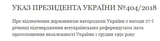 Про це йдеться в указі на сайті президента України Петра Порошенка.