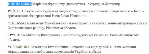 Загиблу актрису "Дизель Шоу" Марину Поплавську посмертно нагородили орденом "За заслуги" ІІІ ступеня.