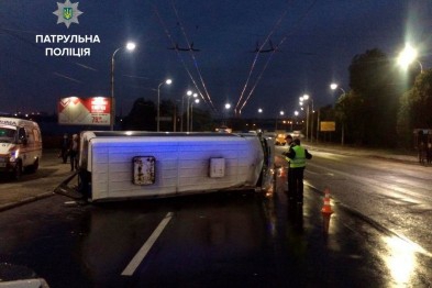 Маршрутка №75 перевернулася біля зупинки громадського транспорту. Постраждали двоє людей.