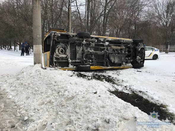У Запоріжжі на Дніпровському шосе на величезній швидкості перекинулася маршрутка №49. Всередині автобуса перебували 18 пасажирів. За словами водія, він не впорався з керуванням, оскільки заїхав на засніжений бордюр. У той же час, як розповіли свідки події, маршрутка рухалася по слизькій дорозі з великою швидкістю.