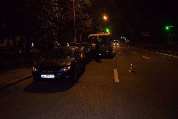 Аварія трапилася 22 серпня близько 22:30. За попередньою інформацією, співробітники поліції охорони зупинили Subaru, який їхав в бік вулиці Російської з вимкнутими фарами. Поліцейський автомобіль був припаркований позаду, В цьому ж напрямку їхала маршутка. З невідомих причин водій "Богдана" протаранив Volkswagen, а він за інерцією врізався в Subaru, повідомляє Інформатор.