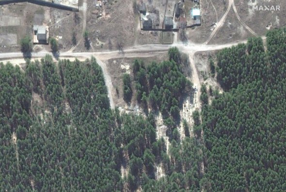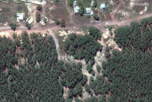 Maxar опублікував супутникові знімки масового поховання біля Ізюма на Харківщині.