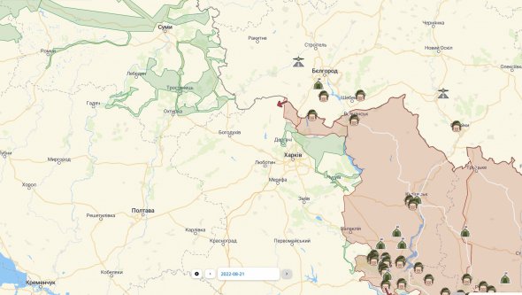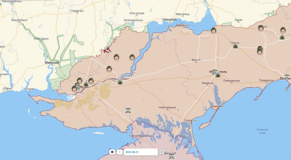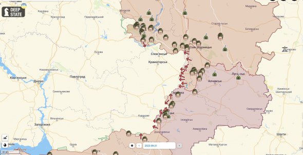 Проте ворог має частковий успіх на півдні. Про це свідчить карта бойових дій станом на 21 серпня від Deepstatemap.