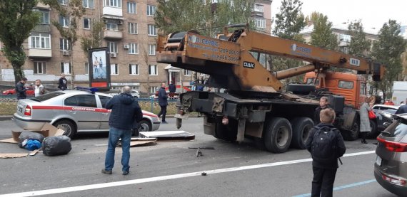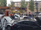 У Печерському районі Києва на бульварі Лесі Українки сталася масштабна ДТП. Підйомний країн зіштовхнувся з щонайменше 20 легковими авто.