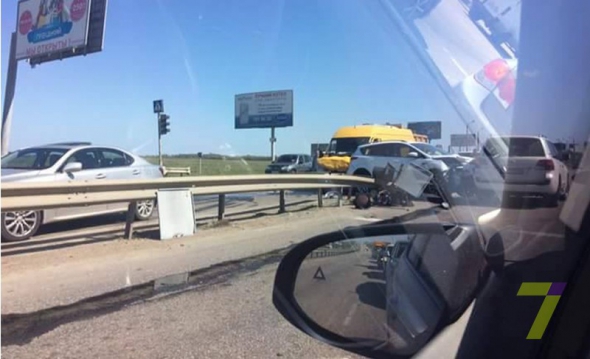 Як повідомляють очевидці, збитий світлофор. Один з автомобілів протаранив розділовий відбійник. Інформації про постраждалих немає.
