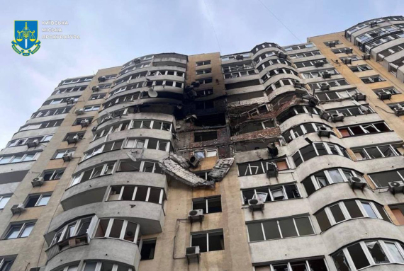 У Соломʼянському районі столиці пошкоджено квартири на кількох поверхах 16-поверхового житлового будинку. За процесуального керівництва Київської міської прокуратури розпочато досудове розслідування, повідомила в п'ятницю пресслужба Офісу Генерального прокурора. Також пошкоджено магазини та торгівельний центр.