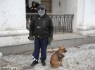 В цей час до "беркутівців" підходить чоловік у чорному шоломі та чорних окулярах. Обличчя до очей закриває "арафатка". На поводу тримає рижого пса породи "боксер". Стає у струнку позу.