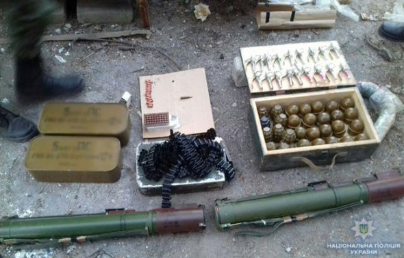 Військова контррозвідка СБУ виявила в районі АТО на Донеччині два сховки зі зброєю та боєприпасами. У Бахмутському р-ні співробітники спецслужби виявили протипіхотну міну ПМН-2 та запал до неї.
