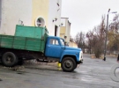 Вся привокзальна площа — у бензині. У стіні вокзалу - діра, яку закладають будівельники. Сам отвір, який прорубав автомобіль, закритий вантажівкою.
