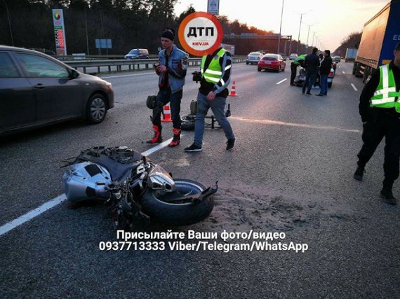 Мотоцикл зіткнувся з легковим авто на Бориспільській трасі в напрямку Києва.