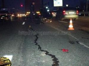 Вчора, 7 жовтня о 17.30 в Києві між мостом Патона і проспектом Воз'єднання загинув мотоцикліст. За повідомленням столичних працівників ДАІ, пілот мотоциклуYamaha, який рухався у напрямку центра, несподівано виїхав на реверсивну смугу. Назустріч їхала Daewoo Lanos. Зіткнувшись з авто, сидіння мотоциклу впало на тротуар, пілот відлетів вправо, частина його ноги відлетіла на зелену смугу тротуару. Смерть настала миттєво. Прибула швидка вже нічим не змогла задіяти. Медики констатували смерть на місці.