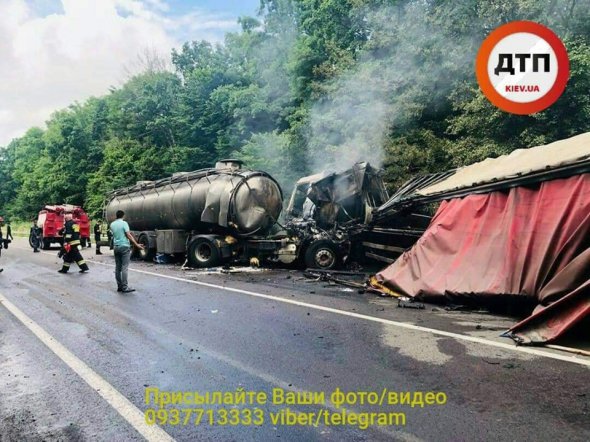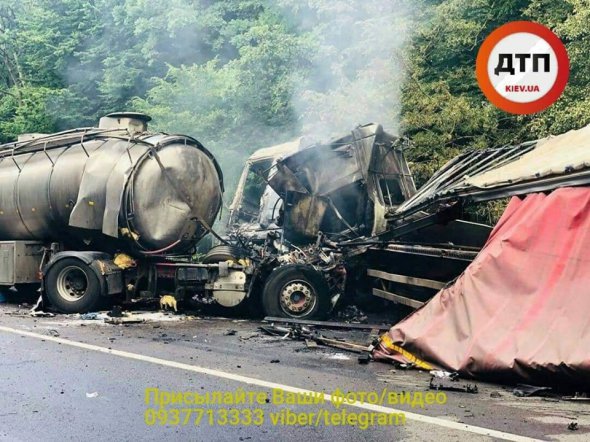 "Лобове зіткнення двох фур, з пожежею. Обидва водії в реанімації", повідомляє dtp.kiev.ua.