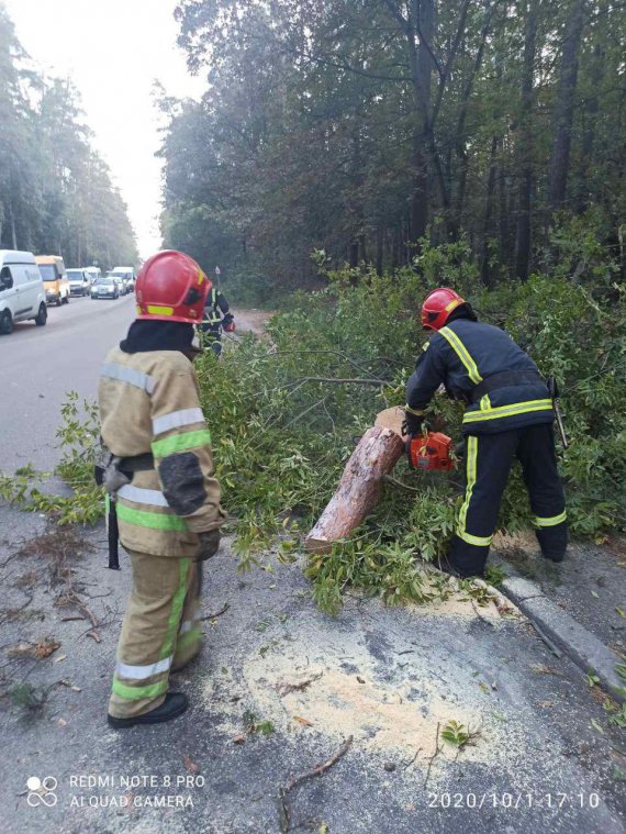 Рятувальники витягнули з автівки постраждалих та передали їх працівникам швидкої. У потерпілих незначні забої та подряпини. Після цього рятувальники продовжили звільняти проїжджу частину дороги від поваленого дерева.