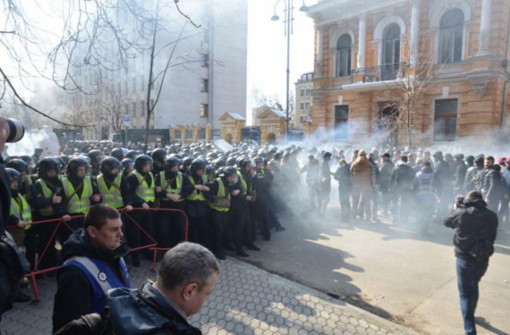 Націоналісти спробували прорвати кордон силовиків. У хід пішли вибухові пакети, димові шашки і сльозогінний газ.