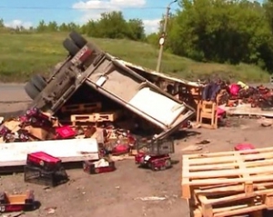 На в'їзді до Харцизьк Донецької області через аварію на дорозі утворилося криваво-червона каша з декількох тонн розчавлених помідор.