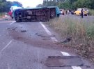 Маршрутка їхала з Харкова у Станицю Луганську Луганської області. За попередніми даними, вона перекинулася внаслідок того, що водій намагався уникнути зіткнення з автомобільною шиною. Вона лопнула на автомобілі "Рено Магнум" попереду.