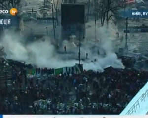 Вулиця Грушевського у Києві оповита димом, мітингувальники дослухалися прохання Віталія Кличка та загасили вогонь.