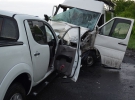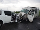 Водій мікроавтобуса Volkswagen, при виконанні маневру обгін, виїхав на смугу зустрічного руху, де скоїв зіткнення з мікроавтобусом Ford Тransit та автомобілем Mitsubishi L 200, які рухались у зустрічному напрямку.