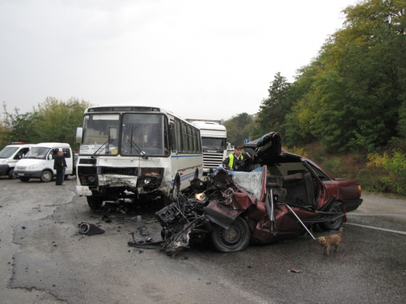 "Водій автомобіля "Ауді-100" не вибрав безпечної швидкості руху, - розповідає старший інспектор ДАІ Хмельницької області Світлана Свідерська, 28 років", - виїхав на смугу зустрічного руху і зіткнувся з автобусом ПАЗ.
