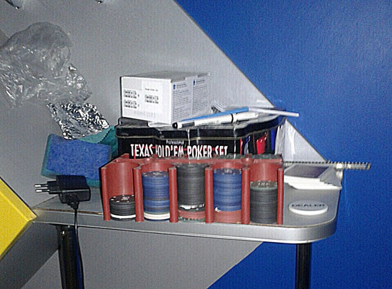З усіх сторін будівля була обладнана камерами спостереження. Також камери були встановлені і в залі для гри. Після обшуку було вилучено покерний стіл, 1,4 тисячі гральних фішок, чорнові записи, 44 тисячі гривень, отриманих від гравців у якості ставок.