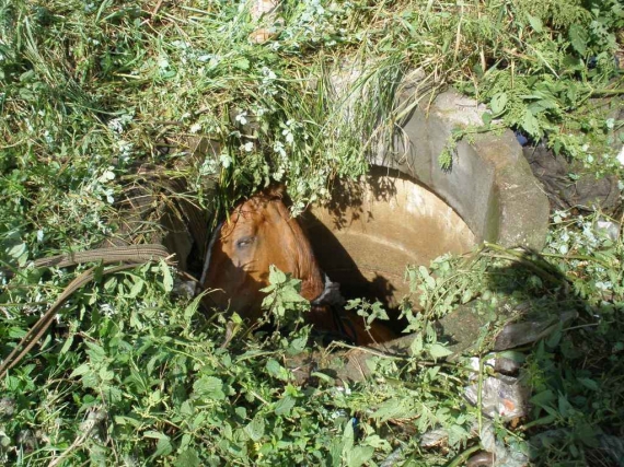 3 серпня о 12.40 у місті Шепетівка на Хмельниччині в каналізаційний люк провалився кінь. Це трапилося в центрі міста поблизу Центрального продовольчого ринку. Власник тварини розвертав підводу.