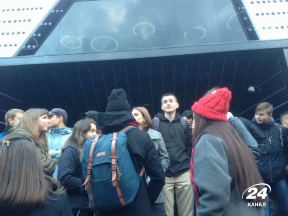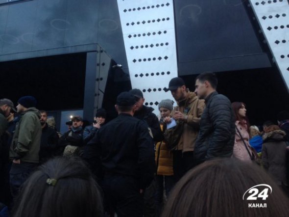 Люди, що прийшли на концерт із квитками спробували зайти всередину. Їх почали відштовхувати.
