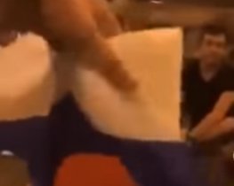 У ніч на 13 липня в центрі Києва на майдані Незалежності компанія розгорнула прапор РФ та агітувала за "дружбу" з країною-агресором.