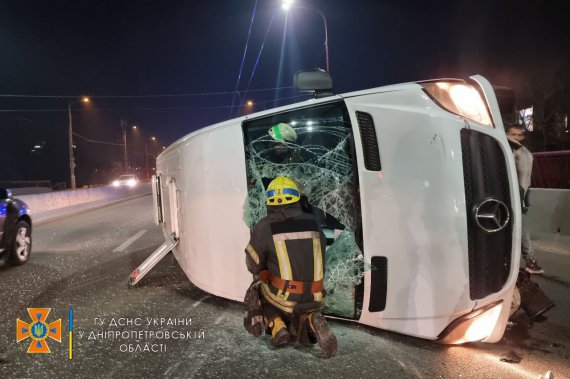 У Дніпрі ввечері 16 листопада на центральному мосту Амур-Нижньодніпровського району перекинувся мікроавтобус із пасажирами.